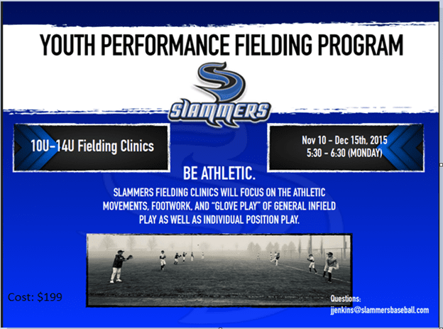 Slammers fielding clinics will focus on the athletic movements, footwork, and “glove play” of general infield play as well as individual position play.